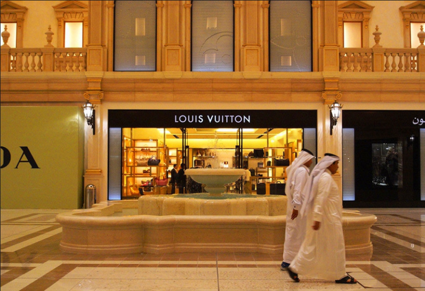 地面的大理石倒映著金色的燈光,與兩旁商店上同樣光亮的大字相輝映,一眼望去,世界上最著名的奢侈品名店和頂級會所匯聚于此。在卡塔爾,奢華一詞只是生活常態(tài)而已。